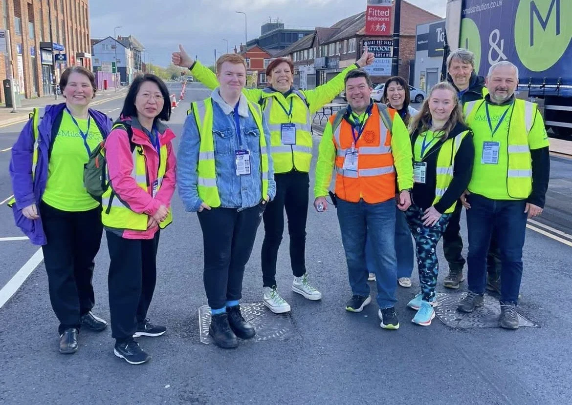 For the past few years our marshalling squad have marshalled around Cross Street/Dane Road in Sale and we have asked for the same spot again although this cannot be confirmed until nearer the time. We will also have a volunteering squad somewhere inside the Event Village at the finish line on Oxford Road. You can choose which location you prefer.